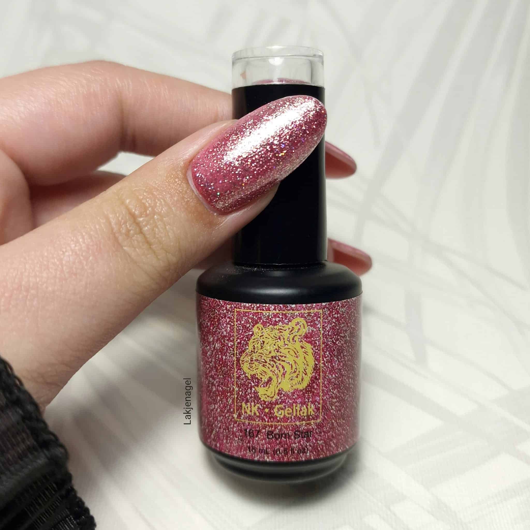 De gellak kleur Born Star is een roze glitterkleur waarin fijne glitters verwerkt zitten. Deze kleur is dekkend in twee tot drie laagjes.